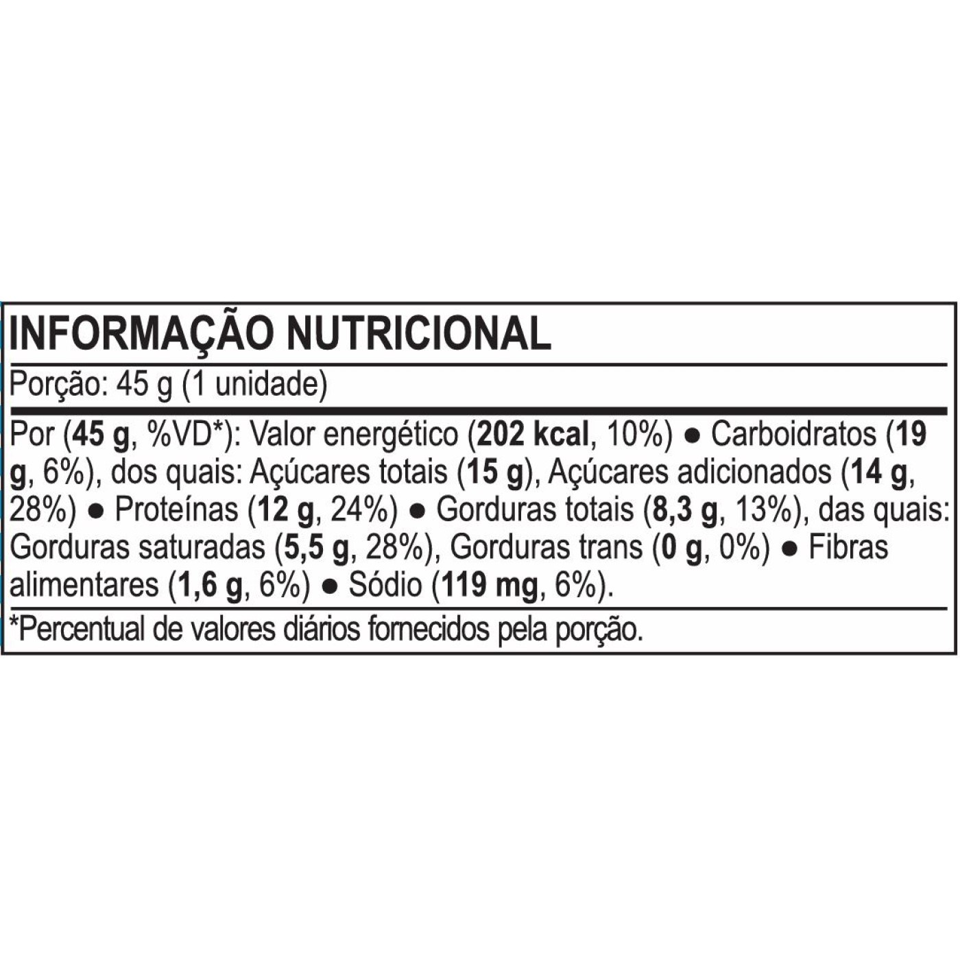 - Por unidade (45 g): 12 g de proteína.